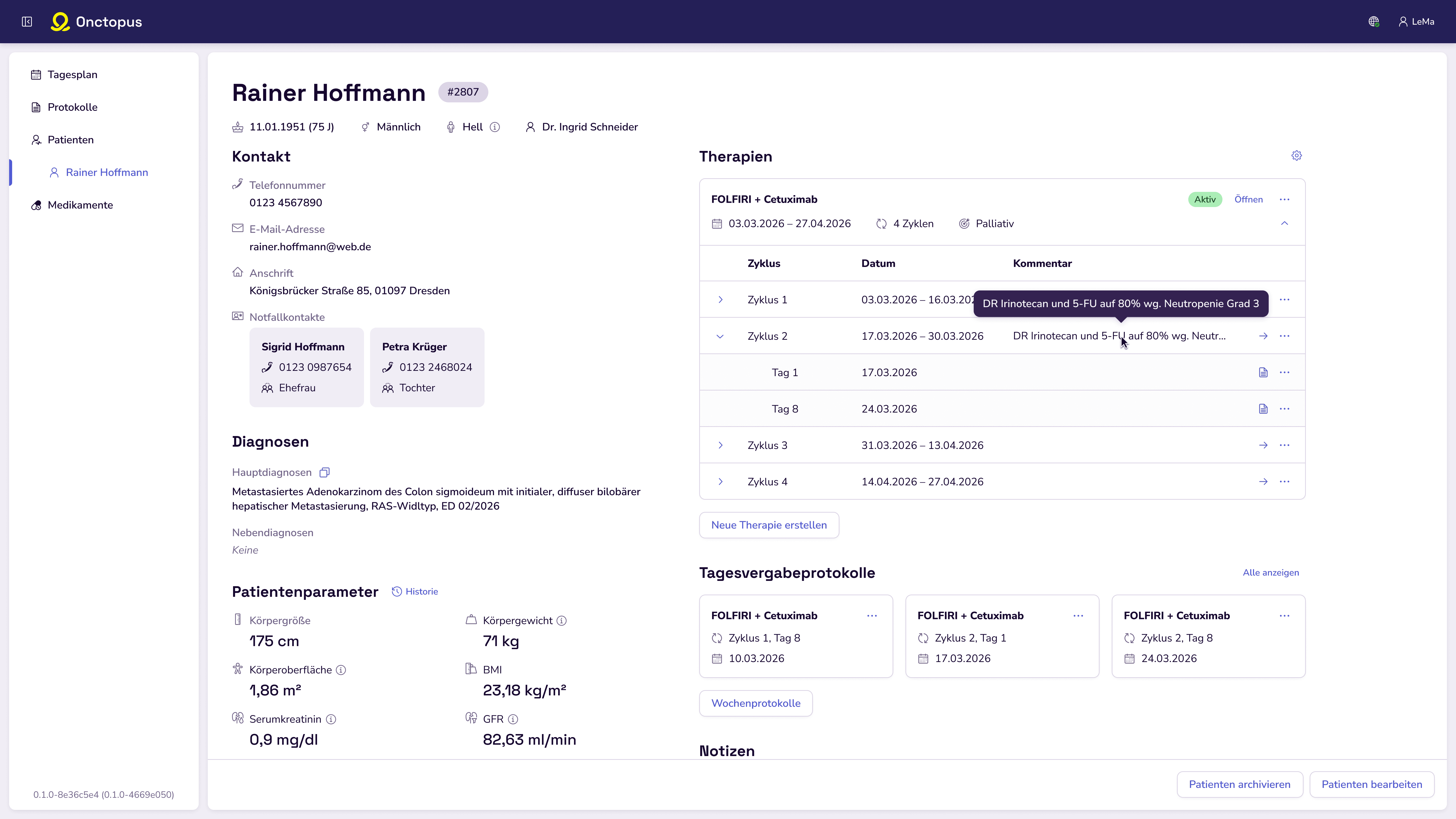 Onctopus is an oncology planning software that is specifically tailored to treatment planning in outpatient practice. It supports therapy planning, documentation, and workflow management, helping teams work more efficiently. The software integrates smoothly into all relevant steps of the treatment workflow, facilitating efficient coordination and clear documentation.